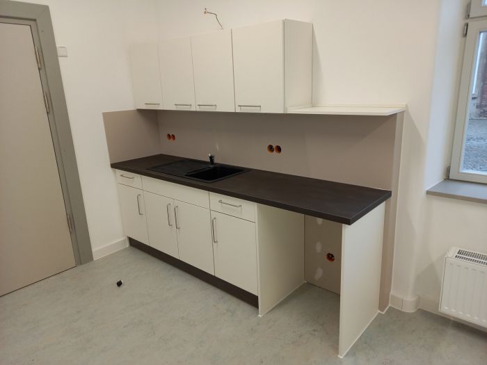 Einbauküchen, Tresen, Sitzbank mit Ablagetisch, Wandverkleidung