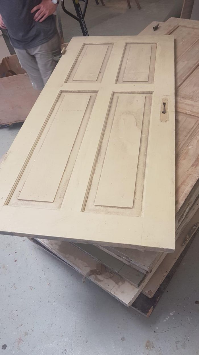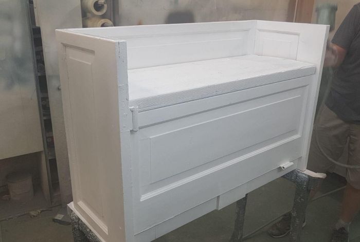 Diese Sitztruhe aus einer historischen Rahmen/Füllungstür.